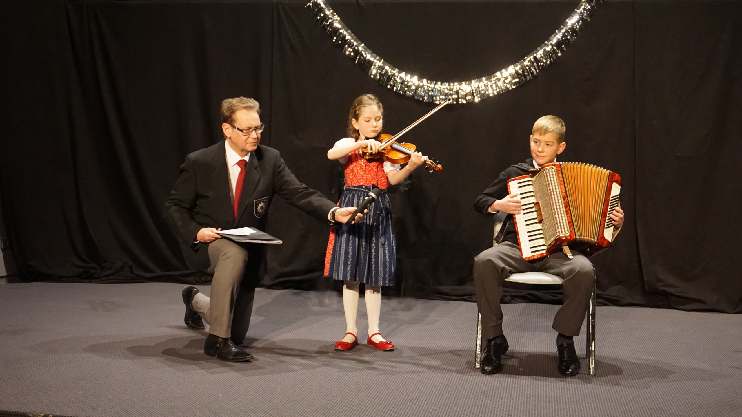 Hier wurde der Chor unterstützt von Mateo am Akkordeon und seiner 8jährigen Schwester Märta an der Geige, die mit stehenden Ovationen verabschiedet wurden.